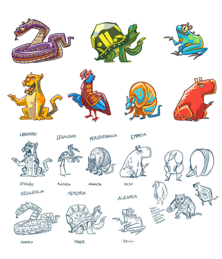 - Creación de Contenido Animado Extenso: Ideación y producción de más de 30 minutos de animaciones protagonizadas por personajes guardianes de la historia. Estos personajes sirvieron como narradores didácticos de los eventos históricos. Este contenido se dividio en 10 capsulas de 3 minutos cada una.